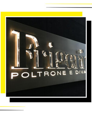 L'insegna è lo strumento usato per contraddistinguere e indicare al pubblico i locali o il luogo di ubicazione di un'attività commerciale. Realizziamo insegne a Cassonetto illuminato monofacciale e bifacciale; Pannelli in Forex o Dibond con adesivo stampato; pannelli in Forex con elementi in forex sagomati a rilievo con adesivo fotoriflettente; pannello in alluminio fresato con plex opalino e illuminazione neon; pannello in alluminio fresato con lettere a rilievo e illuminazione Led; targhe in plexiglass con elementi incisi e illuminazione Led.